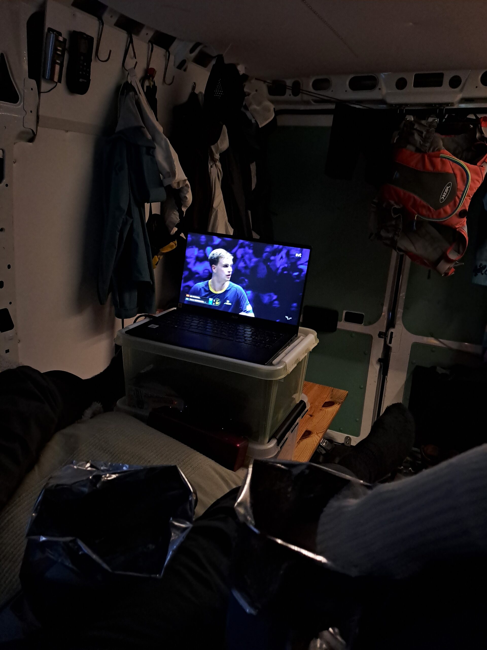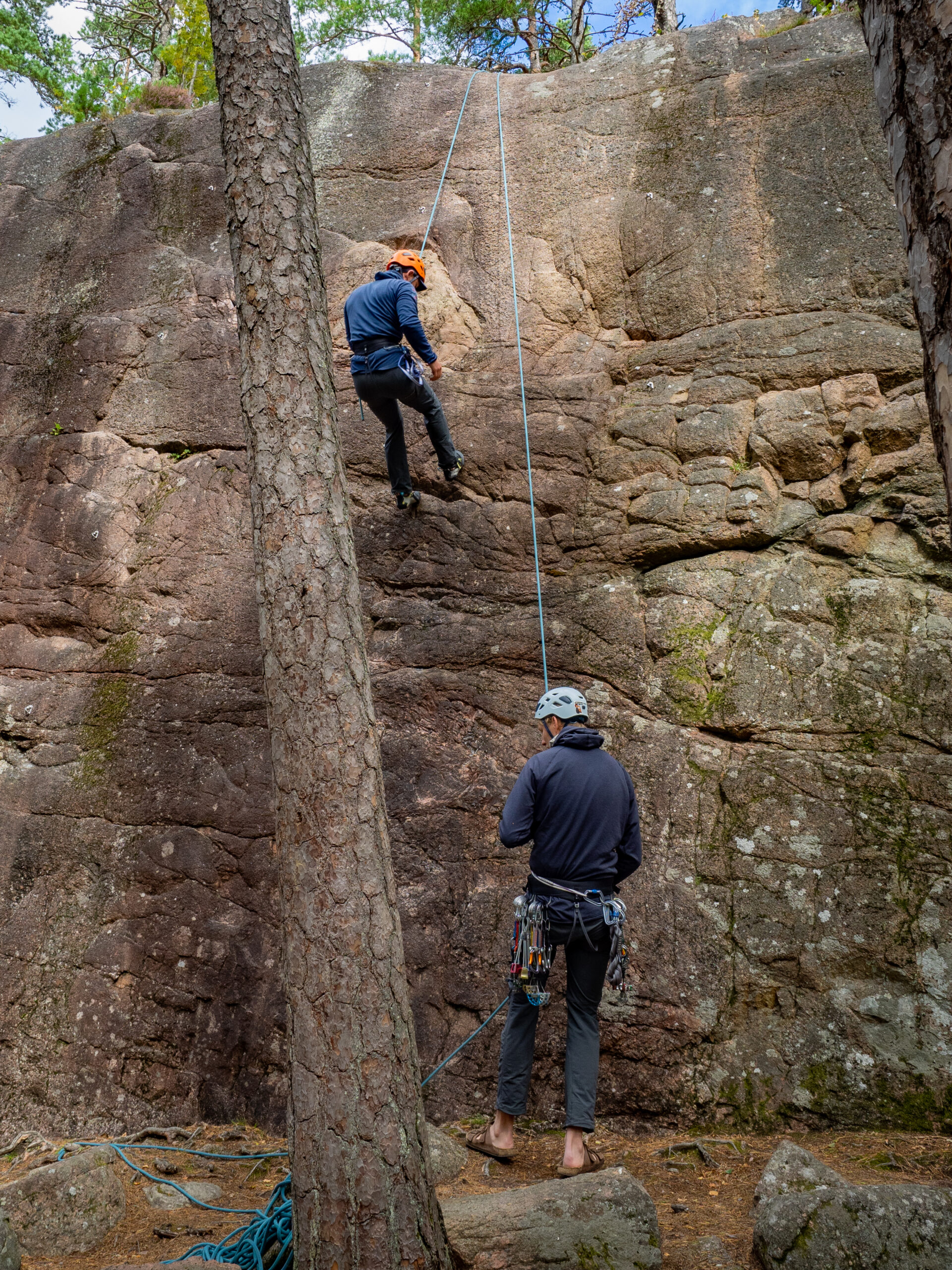 Efter klättringen första dagen tog jag en löptur runt sjön, tror den var ca 9-10km. TIPS! Väldigt fint med varierad terräng och kuperat, längst med sjön. Skulle säga att det är så här svensk sensommar är när det är som bäst. Lätt vind, kring 15 grader och sol. När jag kom tillbaka till parkeringen satt gänget och kollade WTT Europe Smash där så klart Truls var med och vann hela skiten! Jag är inte involverad i pingis men satan vad vi alla drogs in i matchen och ni som såg: ni vet vad som hände… det var brutalt spännande!