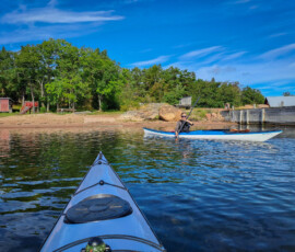 Vi fortsatte paddla mot de yttre öarna och kobbarna. Östersjön här är mycket renare än vid s:t Annas skärgård, stor skillnad. Det är klarare vatten, mindre alger och fler fiskar upplevde jag. Så jag drömde mig bort till norska havet där det är ännu mer liv. Det får bli nästa sommars äventyr vilket jag informerade Emil om.