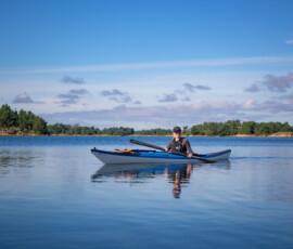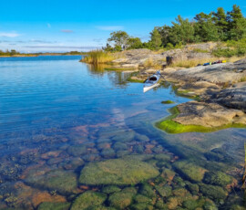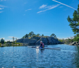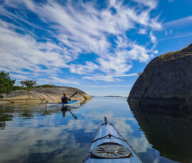 Idag är dagen, äntligen! Då vi kom iväg och paddlade i Ålands skärgård. Mest taggad är nog Emil, han har velat se Åland länge. Jag med men inte med samma entusiasm. Färjorna som går mellan öarna i ytterskärgården gillar jag starkt pga lika fina och fräscha, som den stora färjan från Sverige. Den första vi tog idag hade soffhörnor, bjöd på kaffe och stora fönster så man kunde se alla små öar vi åkte förbi. Det var nästan bättre än självaste paddlingen. Vi åkte till Överö och utgick därifrån med kajakerna. Planen var att komma ut ytterligare i skärgården och sova på en lämplig ö, skär eller kobbe. Under tiden vi paddlade ut kände jag mig mest rastlös, frustrerad och hade energi x1000. Tog ut alla känslor på Emil genom att sjunga och retas. Inget jag är stolt över, tror inte han uppskattade det. Sen övergick känslorna i en olustkänsla och jag blev irriterad och less. Ibland har jag svårt att förstå mig själv, vad jag vill och behöver. Lär man sig det när man blir vuxen? Det är väl ett evighetsjobb om jag får gissa.