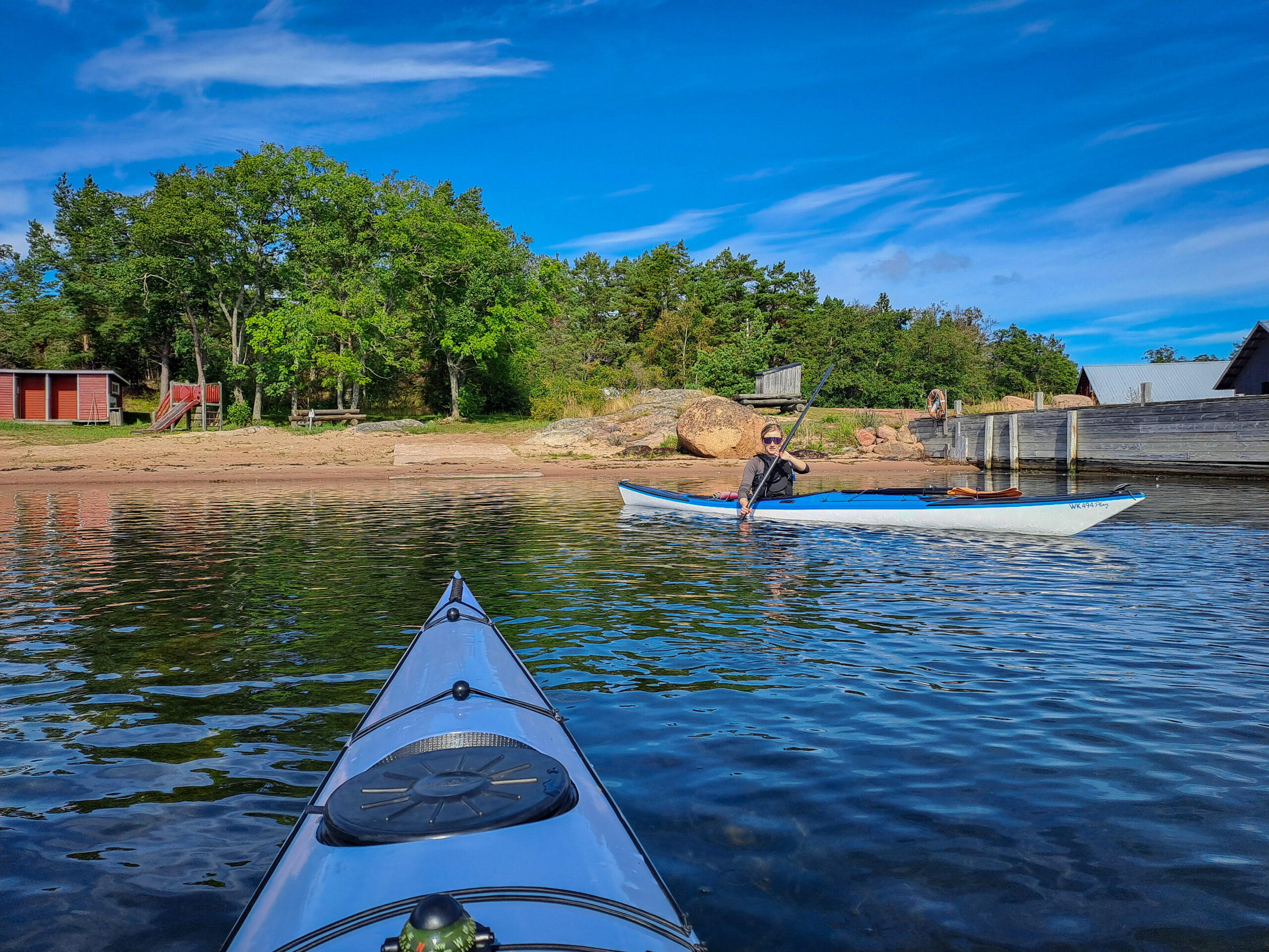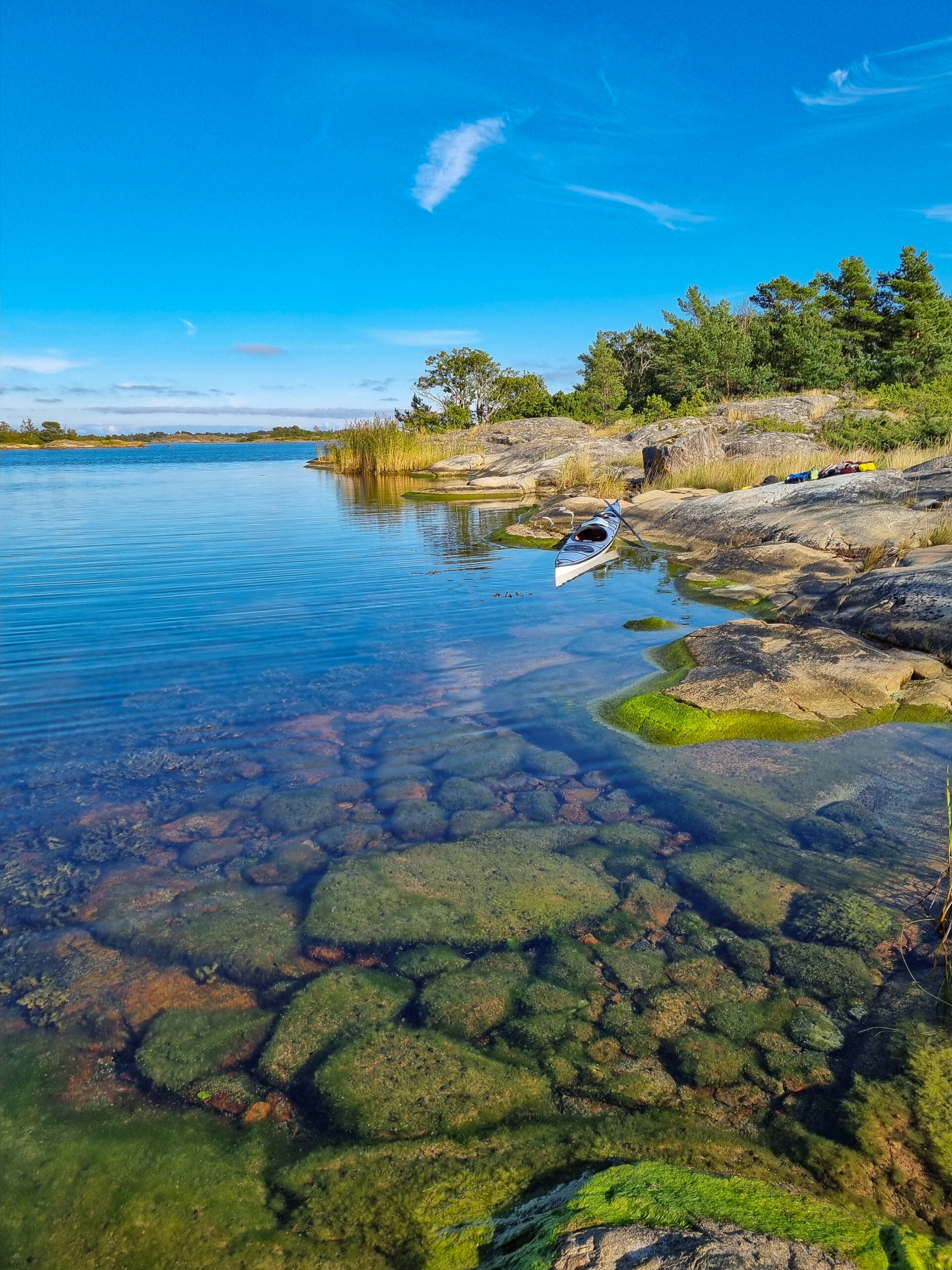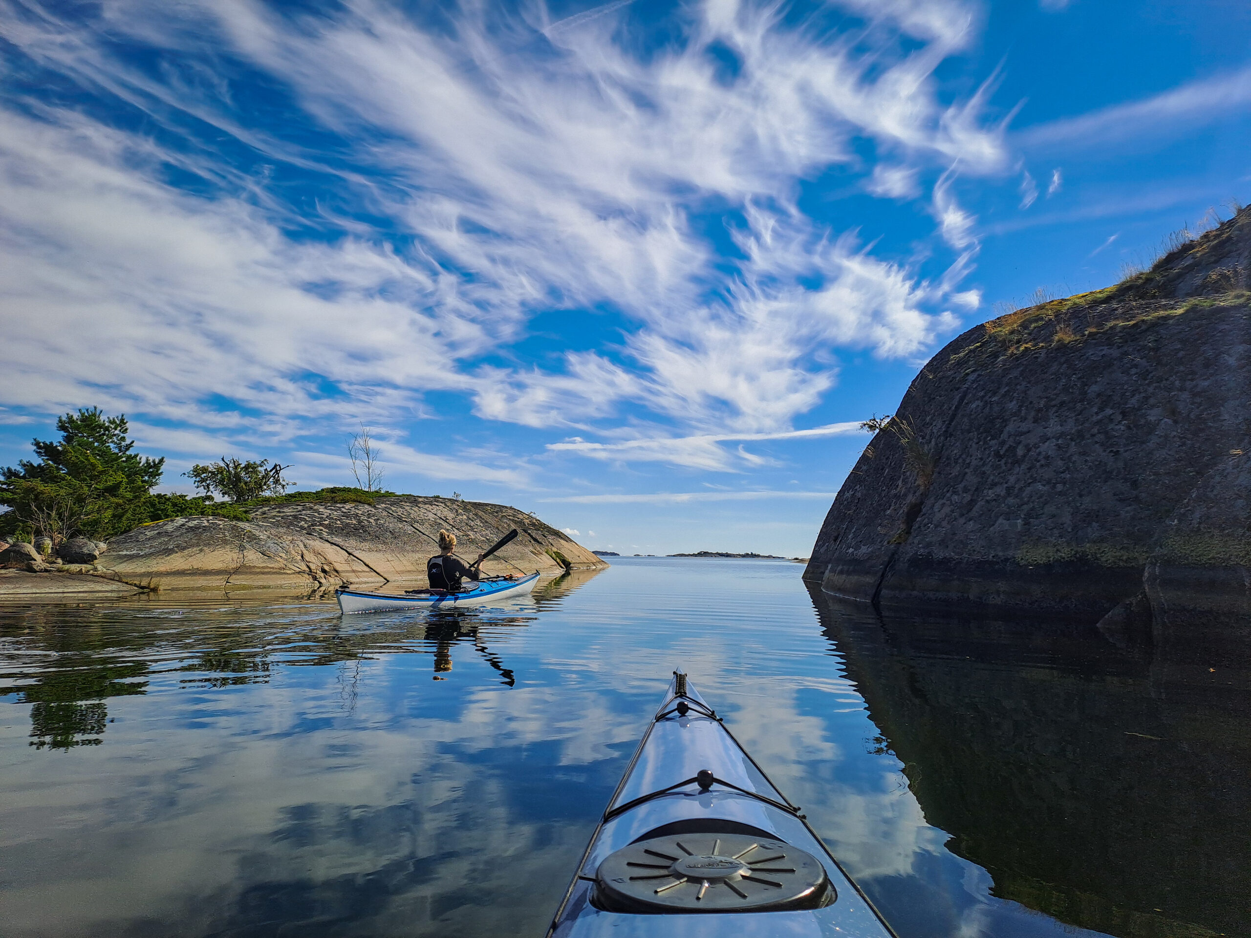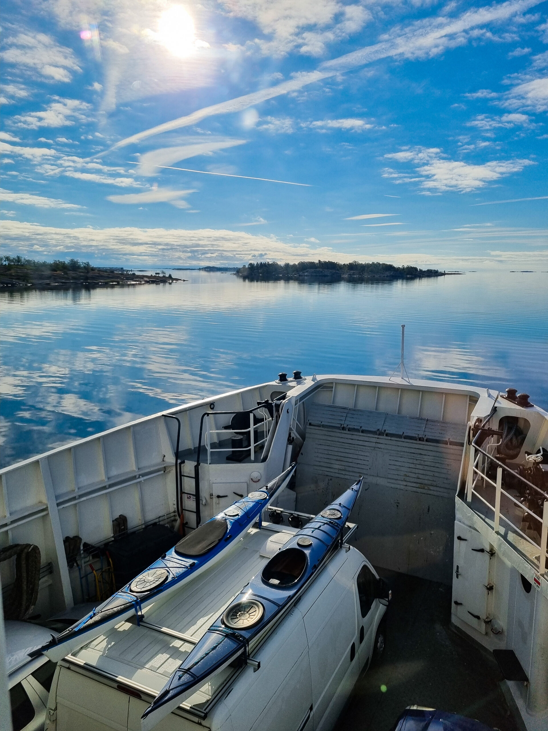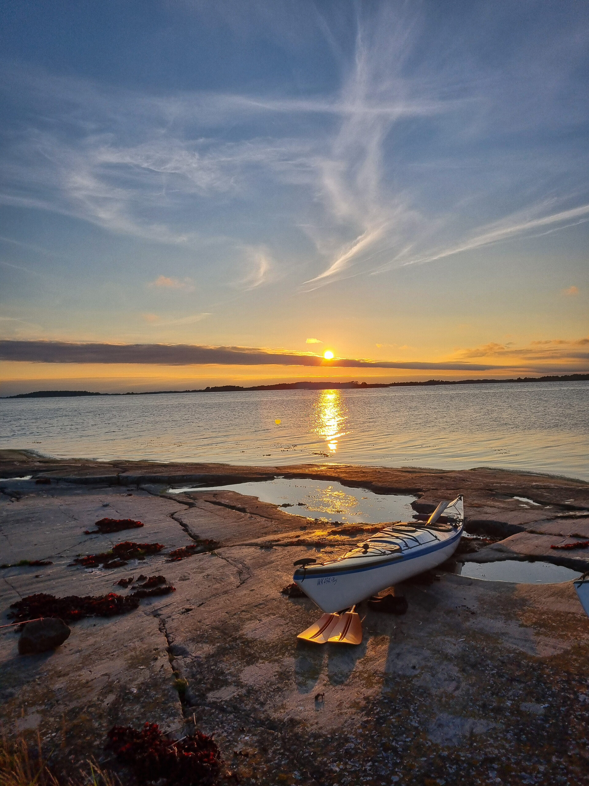 Idag är dagen, äntligen! Då vi kom iväg och paddlade i Ålands skärgård. Mest taggad är nog Emil, han har velat se Åland länge. Jag med men inte med samma entusiasm. Färjorna som går mellan öarna i ytterskärgården gillar jag starkt pga lika fina och fräscha, som den stora färjan från Sverige. Den första vi tog idag hade soffhörnor, bjöd på kaffe och stora fönster så man kunde se alla små öar vi åkte förbi. Det var nästan bättre än självaste paddlingen. Vi åkte till Överö och utgick därifrån med kajakerna. Planen var att komma ut ytterligare i skärgården och sova på en lämplig ö, skär eller kobbe. Under tiden vi paddlade ut kände jag mig mest rastlös, frustrerad och hade energi x1000. Tog ut alla känslor på Emil genom att sjunga och retas. Inget jag är stolt över, tror inte han uppskattade det. Sen övergick känslorna i en olustkänsla och jag blev irriterad och less. Ibland har jag svårt att förstå mig själv, vad jag vill och behöver. Lär man sig det när man blir vuxen? Det är väl ett evighetsjobb om jag får gissa.